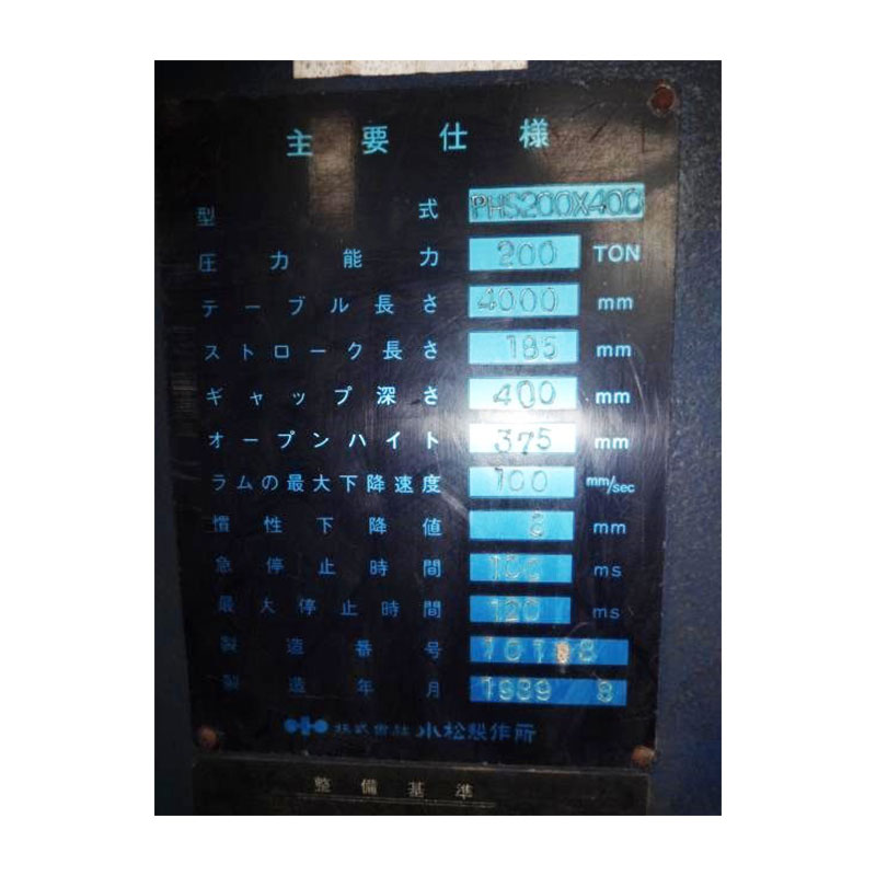 Máy Chấn Komatsu PHS200x400 TNBG-001-02